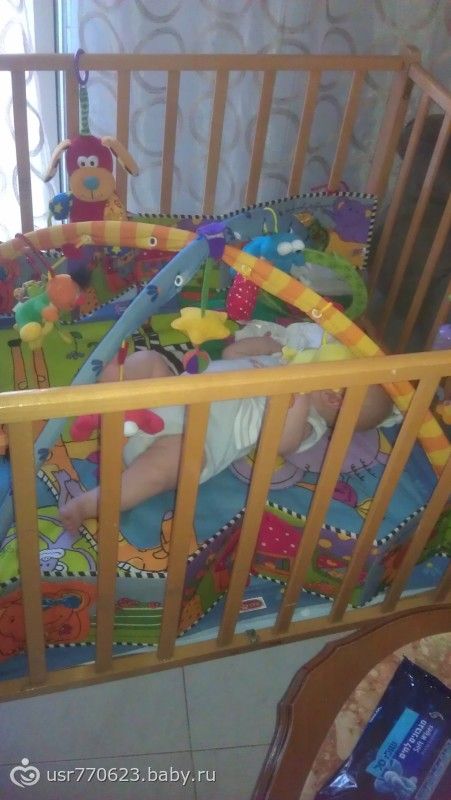 мы пока не купили… на крючках будем пока покупать но в кроватку манеж потом как ползать начнет