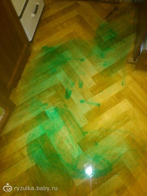 ребенок пролил пузырек зеленки! на полу теперь вот аткой ужас:
