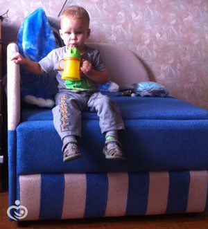 Но все имеет свой конец, также и наш совместный сон однажды тоже закончился. Я всегда была настроена на длительное грудное вскармливание, поэтому никаких попыток переложить ребенка в отдельную кровать я не делала - зачем специально создавать себе трудности? Более того, в 11 месяцев мы даже разобрали детскую кроватку – хотя признаться, с ней было очень удобно – по ночам она превращалась в склад игрушек, а днем в ней хранилась одежда )). В полтора года у нас завершились ночные кормления и ребенок начал спать всю ночь. И я подумала, что пора устраивать для малыша отдельное спальное место. Мы вместе с ребенком пошли в магазин и вместе выбрали для него новый детский диван-кровать, с небольшими бортиками по бокам.