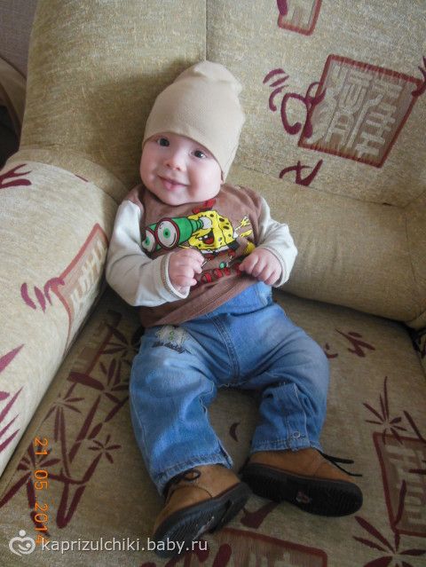. БОЛЕЕ МЕНЕЕ НАЛАДИЛСЯ РЕЖИМ: ПРОСЫПАЕМСЯ С 6-30 ДО 8-30 (СМОТРЯ ВО СКОЛЬКО ВЕЧЕРОМ ЛЕГ), ПОТОМ В 10-11 СОН НА 40 МИНУТ, ДНЁМ НА УЛИЦЕ ОТ 2 ДО 4 ЧАСОВ, ВЕЧЕРОМ ТОЖЕ МИНУТ 40 (СМОТРЯ СКОЛЬКО ДНЁМ ПРОСПАЛ). НА НОЧЬ ЛОЖИМСЯ В 21-22 ЧАСА. РЕЖИМ, КОНЕЧНО, НЕ АХТИ, НО ХОТЬ КАКОЕ-ТО ПОСТОЯНСТВО. СТАЛ БОЛЕЕ КАПРИЗНЫМ И ТРЕБОВАТЕЛЬНЫМ, НЕ ЛЮБИТ ДОЛГО НАХОДИТЬСЯ ОДИН, ХОЧЕТ ВНИМАНИЯ ПОСТОЯННОГО. НО МОЖЕТ МИНУТ ПО 30 ИНОГДА ИГРАТЬ С ИГРУШКАМИ, МИНУТ 5 ГЛЯНУТЬ МУЛЬТИКИ С ДОЧКОЙ. ОЧЕНЬ, КСТАТИ, СТАЛ ЗА НЕЙ ГОНЯТЬСЯ, ВИДИТ ЕЁ И СМЕЁТСЯ В ГОЛОС. ТАКЖЕ СТАЛ НА КОШКУ РЕАГИРОВАТЬ, ХОТЯ РАНЬШЕ НЕ ЗАМЕЧАЛ. НАЧАЛ ПОЛЗАТЬ ПО-ПЛАСТУНСКИ, ДО НУЖНО ВЕЩИ ДОБИРАЕТСЯ ЗА СЕКУНДУ. ПЫТАЕТСЯ СИДЕТЬ САМОСТОЯТЕЛЬНО — НЕНАДОЛГО САЖУ ЕГО В ПОДУШКУ ИЛИ ШЕЗЛОНГ. ОБОЖАЕТ ИГРАТЬ В «ПО КОЧКАМ-ПО КОЧКАМ..». НА УЛИЦЕ ТЕПЕРЬ НЕ ТОЛЬКО СПИТ, НО И ЛЮБИТ НАБЛЮДАТЬ ЗА ОКРУЖАЮЩИМ МИРОМ, ТАК ЧТО ГУЛЯЕМ В ПОЛУЛЕЖАЧЕМ ПОЛОЖЕНИИ И БЕЗ ПОЛОГА НА НОГАХ. УЖЕ НАЧИНАЕТ ПРОИЗНОСИТЬ НОВЫЕ ЗВУКИ И СЛОГИ, ЧАСТО МОЖНО УСЛЫШАТЬ «МА». ЗА ОТЦОМ ГОНЯЕТСЯ ГОТОВ С РУК МОИХ СПРЫГНУТЬ И К НЕМУ. ЗУБОВ ПОКА ТАК И НЕТ, НО СЛЮНИ РУЧЬЁМ. ИНОГДА СИЛЬНО БЕСПОКОЯТ, ИНОГДА ЗАТИШЬЕ. УЖЕ 2 РАЗА СПЛАНИРОВАЛИ С ДИВАНА. ПОСЛЕ ВТОРОГО РАЗА СИНЯЧОК НА ЛБУ ОСТАЛСЯ
