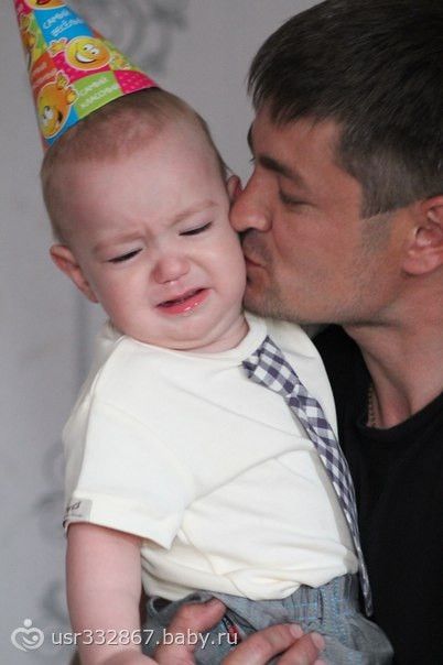 А чё это он так плачет, из-за того что папа его целует, что ли???