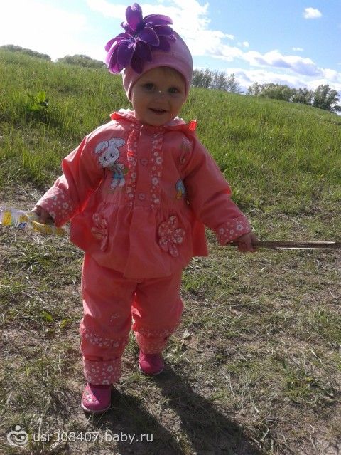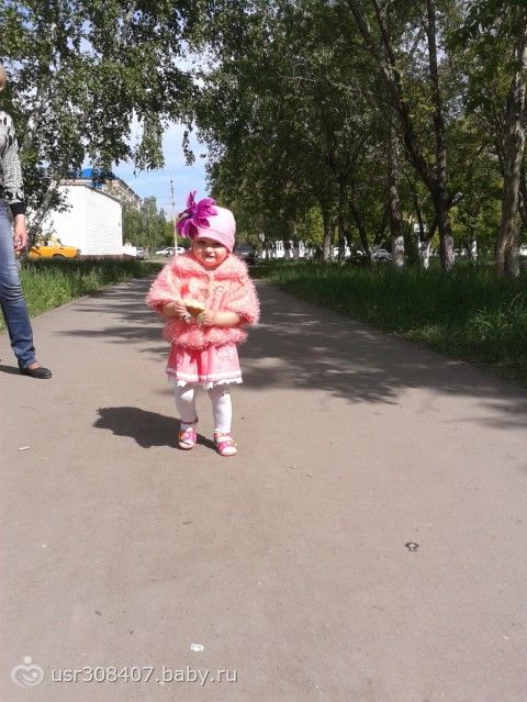 с 1 июня по 8 была Алиска дома, так классно с ней… а без неё тоска) сходили на здоровый приём в год и 9… совсем он меня расстроил… вес у неё всего 10 кг и рост 77(( в комнате здорового ребёнка, сказали что недостаток роста и веса, на мой вопрос что делать? сказали носиться за ней с ложкой постоянно(что в принципе я всегда и делала) никаких витамин и сиропов не надо, т.к она и без того активна… а педиатр так вообще улыбнулась и сказала что она будет миниатюрной девочкой! но я всё таки взяла ей в аптеке какой то сироп для роста«Вивабон» посмотрим что будет дальше! вот наша куколка(прошлая неделька):