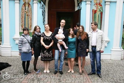 Тут все кто пришли на крещение слева направо: свекровь, сестра мужа, моя мама, супруг, крестная, я, крестный