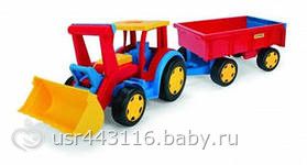 фирма Wader. очень качественный пластмасс, у нас вот такой трактор, так он выдерживает 100 кг, а прицеп 60кг, ребенку ее сломать нереально