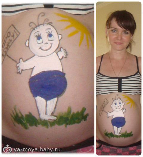 Занялась сегодня «животным» творчеством. С дочкой подруга живот разрисовывала, а сейчас она сама пузатая в другом городе, пришлось самой изощряться))) Малышу процесс рисования вроде понравился, где карандашом проводила, там он откликался. Только теперь проблема как за дочкой в сад идти, хотела ей показать, а пока дойду под одеждой все вспотеет и размажется, ну попробую донести живопись до адресата)))