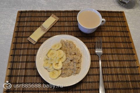 — каша овсяная (50/50 молоко/вода) с бананом 216 гр.