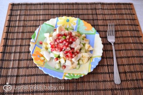 — салат фруктовый (яблоко/банан/гранат) заправленный активией с черносливом 273 гр.