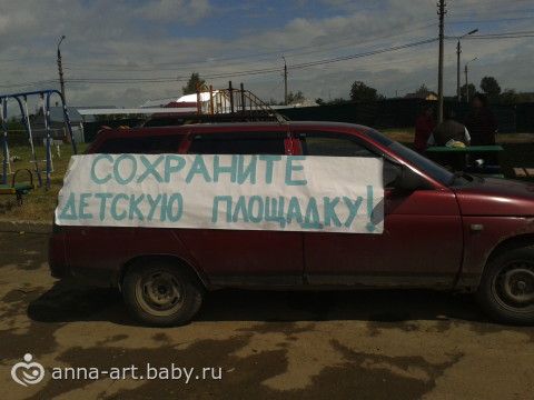 Юль, а как тут забить то? есть клочок земли у детей, пару качелек и горка и то отнимают… одни машины кругом… с ребемь негде вообще гулять у нас… из соседней площадки бабки выгоняют… вот и отчаялись мы на пикет:-)