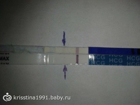 Не верится, что вот так с первого раза у нас получился малыш)))Не могла отпустить ситуацию и уже с 26,27 дц делала тесты -отрицательные. Хоть и понимала что рановато, решила что все же пролет, вчера ночью ели дотерпела до 6 утра сделала, мне показалось что есть вторая полоска, но я решила, что мне чудится, так как спать жутко хотелось, я выкинула тест и пошла спать, снится сон как наяву, что я делаю не дорогой тест он еле видную показывает, бегу за дорогим и он уже четкую но тоже слабенькую полоску показывает, я вся такая радостная и проснулась, аж расплакалась, как то сразу пусто стало, полезла в помойку, а там на тесте вторая полоска, конечно ели видная, но я ее вижу, на фото конечно ее и сама почти не вижу но все же покажу, верхний тест это еще от первого ребенка, а нижний вчера утром(тест дешевый мама чек). Не поверила и вчера днем сделала мама тест, он тоже показал такую ели видную полоску