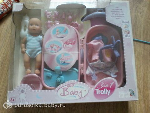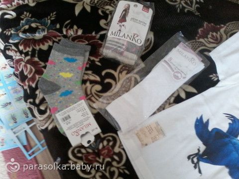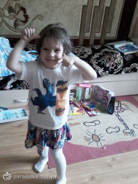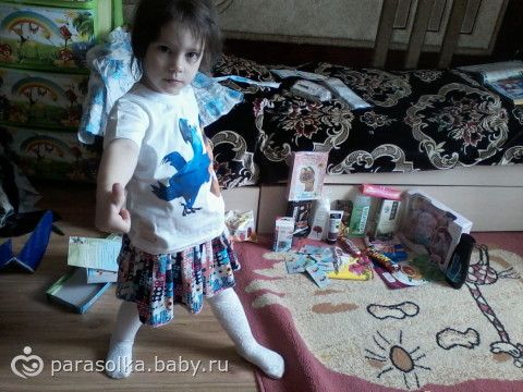 Кирёне Оля подарила домино с диснеевскими феями, красивую футболку с попугаем – у нас тоже дома есть попугай, и тоже голубой. Кира так и поняла, что это футболка с нашим Чико))))) А когда она увидела набор с пупсом – издала радостный вопль и до сих пор ее не отлепить от него. Плюс носочки, гольфики, колготочки. И все совпало по росту, а главное, по цвету – НИЧЕГО РОЗОВОГО! УРРРРА!!! За это – отдельное спасибо.