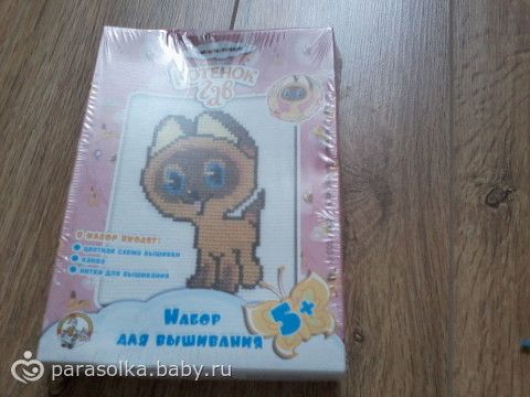 А также Котенок по имени Гав для вышивания. Буду Киру учить вышивать крестиком все каникулы хе-хе )) Нам как раз в характеристике написали, что мелкая моторика слабо развита, бум усиленно восполнять пробелы!