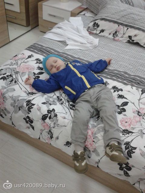 заснул в салоне пока мама ему мебель выбирала в комнату))