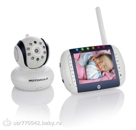 Моторола, с поворотной камерой. Весит на стенке над кроваткой. Легко управляется, если детё лежит на большой кровати то камеру направляю туда. Так же на балкон выставляю по надобности, и слежу за детём. Ночная видимость супер!!!.. Отличная вещь!