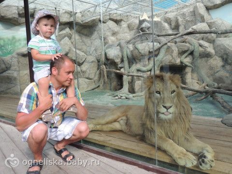 старший так и не подошел ко льву, тот все поиграть через стекло хотел кот он и в Африке кот