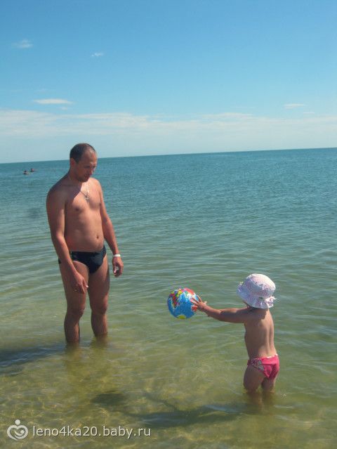 Приветик всем!!! Мы вернулись. Отдыхали на Арбатской стрелке, по путевке от СевГока 12 дней. Было здорово! Водичка теплая, погода хорошая, правда комаров много, но мы спасались спреями и фумигатором. Там мыходили в сафари-парк, на лечебные грязи, на соленое озеро и горячий источник.Кормили нас там хорошо, даже на убой! Загорели тоже хорошо, даже я несмотря на то что я белая как сметана. Доченька ни разу не сгорела, ни заболела (чему мы были очень рады). Ну и фото собственно говоря