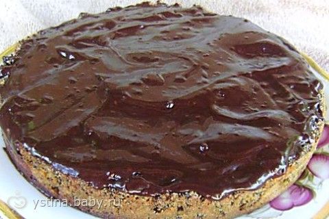 6. Весь пирог часто-часто накалываем вилкой, зубочисткой или шпажкой, чтобы он лучше пропитался глазурью. Заливаем глазурью и даем постоять. Можно и без нее, просто сахарной пудрой посыпать.