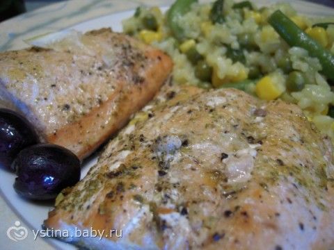 1 Разрезать рыбу на порционные куски, выложить каждый кусок кожей вниз на небольшие листы фольги, посолить, посыпать сухим базиликом. На каждую порцию рыбы положите по кружочку лимона. Заверните фольгу конвертиком. Масла не надо. Если рыба другого сорта, очень тощая, то чуть-чуть маслица на рыбку.