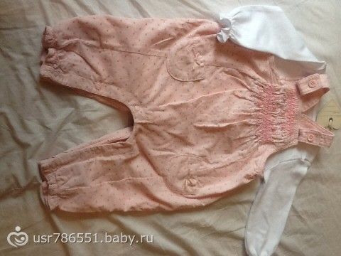 1. Вельветовый розовый комбинезон с вышитыми сердечками и декоративными складками в комплекте с белым боди -100% хлопок. Размер 68-74 см (6-9 мес), но большемерка, нам совсем немного маловат.