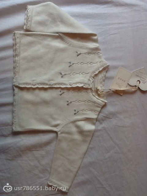 2. Вязаный кардиган бежевого цвета с розочками. 100% хлопок. Размер 68-74 см (6-9 мес).