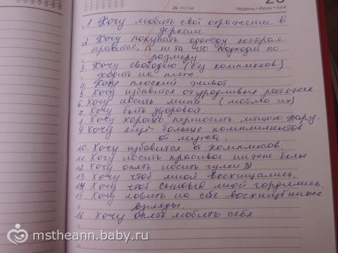 8. Хочу быть здоровой, чтоб потом родить еще здоровых малышей)) и чтоб они гордились красивой мамой))).