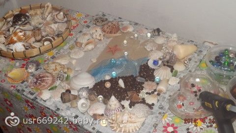 это стекклянные камушки, купила в фикс прайсе круглые и в продсибе на микрорайоне овальные которые, ракушки в колорлоне, а так где что увижу прикольного, там и покупаю))