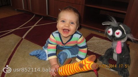 Девчата, всем приветики! Нашему пацанчику сегодня 7 месяцев! Если честно, то я понемногу схожу с ума от него! Раньше только ел да спал. Золотое было время! )))) А сейчас это жесть! Ползает уже очень хорошо, только лови! Всюду лезет, карабкается, всё достаёт! Глаз да глаз нужен! Особенно тяжело, когда я на кухне. Кричит, как только уйду. Требует постоянно моего присутствия! Вот сегодня пошла на кухню, а он выполз из комнаты в прихожую тихенько и сосёт там ботинок мужа! ((( Мне аж плохо стало! Зубов нет по-прежнему! Даже как-то грустно… Ну всё равно ж когда-нибудь вылезут! ))) Сидеть пока не хочет. У него другое: постоянно встаёт на ноги. Доползёт до дивана и карабкается руками. Сначала на коленки, а потом на ножки становится, опираясь! В кроватке тоже самое. Только положишь, а он сразу же на ноги встаёт! Сидит только в коляске. Очень уверенно! Сегодня даже в коляске умудрился встать на ноги! )))) Едим уже хорошо овощи. Стала добавлять мяско 4 дня назад чайную ложечку в овощи. По-прежнему на ГВ. Молока предостаточно! И наши фотки ловите!