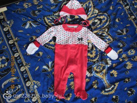 Решила вот показать наши вещички на выписку! Слип, шапочка и царапки: