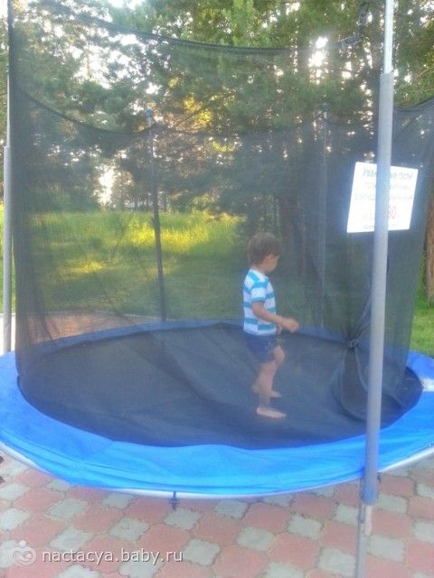 Артюха как заведёный — 3 часа активного плескания и беганья ещё и силы на батуте есть прыгать)