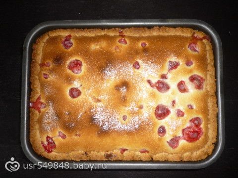 песочное тесто, с творогом и клубникой!
