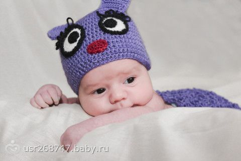 В общем сегодня снимала первый раз такую малявку.Пришла домой к этому мальчугану и он упорно не хотел позировать.Но все же обманными агуканьями удалось заполучить несколько снимков)))Даже попозировал в шапочках моей работы)))