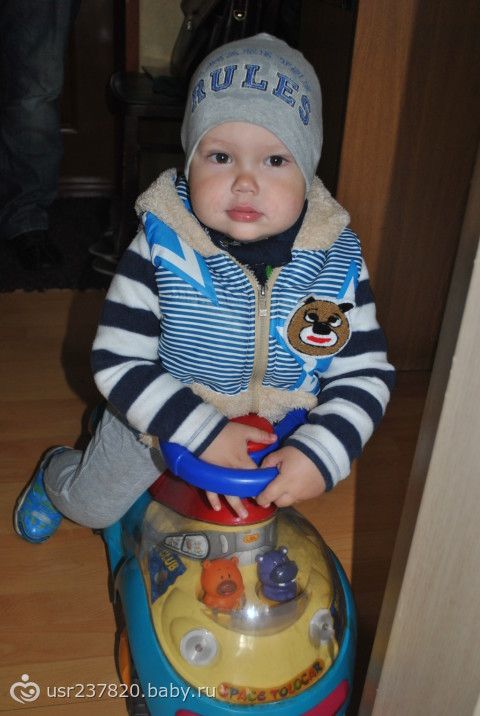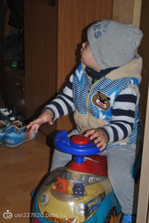 а наш вообще не любит эти трубочки, отказывается пить из них и все, в стакан ему наливайте интеллигентишка))) Ясь на машинке сам отталкивается ногами?