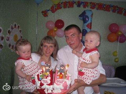 Привет девочки.Времени совсем нет даже читать, дочи требуют много внимания. Немного о нас, мы начали топать с 11,5 месяцев, говорим немного мама, папа, дай, умеем але, ладушки, и так балтают на своем языке, свистеть научились, требуем уже все им дай, все повторяют, такие интересные стали, с каждым днем что новое выкидывают.С едой у нас так себе, едим все через блендер пока, хотя творог кусочками и фрукты мы едим на ура, а вот суп никак. Вот даже сейчас не дают ничего написать.Отметили хорошо, только детки капризничали, было много людей, особенно Ника с бабушкиных рук не слазила, было так жарко, окна не откроешь, дети, так что фоток совсем мало, даже одних их не пофоткала, покажемся. После дня рождения мы уехали к бабушки, вот сейчас еще у нее, гулять с ними одной не реально, в коляске сидеть не хотят, дай ходить и все в разные стороны бегут.