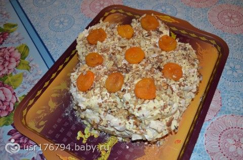 1.Киевский по семейному рецепту: классический бисквит +воздушные безе с грецкими орехами, прослойка из нежного молочно-сливочного крема +немного кураги для контраста (курагу можно заменить на чернослив-тоже очень вкусно получается)