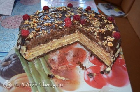 3.Так же необычный тортик Крещатый яр-на дегустации его сегодня не было, но был на моем ДР:-))Этот тортик для любителей всего и сразу: тут и шоколадный корж, и коржи из теста очень похожего на слоеное+ прослойка безе и 2 вида крема:-)))сверху залит шоколадной глазурью:-)