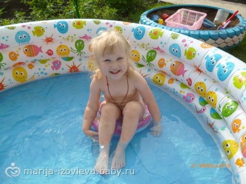 на следующий день погода была прекрасная, мы надули бассейн, налили воды теплой, Варя там долго купалась!