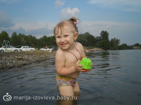 Мы ооооочень любим воду!!! Мы прошлым летом уже купались всей семьей)))Дочь отталкивает от себя меня, не дает, чтобы я ее держала, самостоятельная слишком...