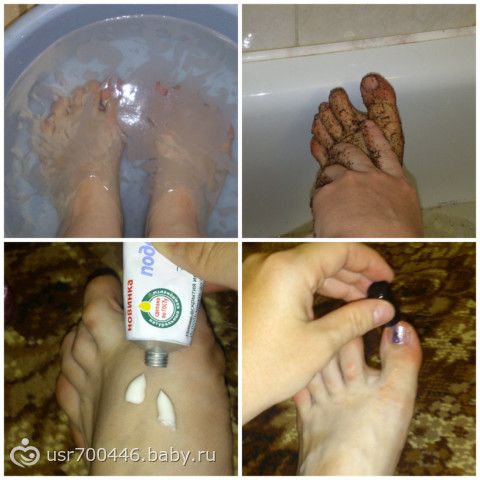 Ножками занимаюсь не часто, по этому делала полный курс))) все как положено, сначала попарила с содой, потом пошкрябала, потом опустила в водичку с грязью, обработала от кутикулы, намазала кремиком и накрасила)))Камни преткновения: