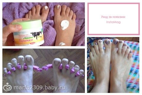 Уход за ножками: ванночка с мор солью и ромашкой, педикюр и крем