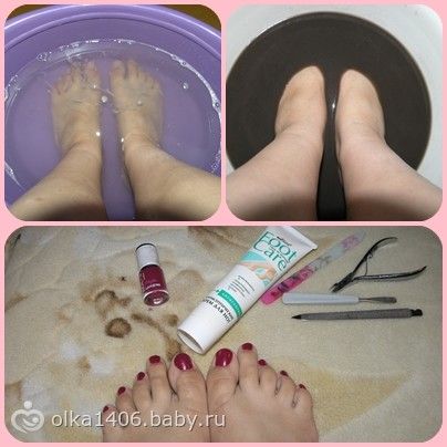 Ножками занимаюсь не часто, по этому делала полный курс))) все как положено, сначала попарила с содой, потом пошкрябала, потом опустила в водичку с грязью, обработала от кутикулы, намазала кремиком и накрасила)))Камни преткновения: