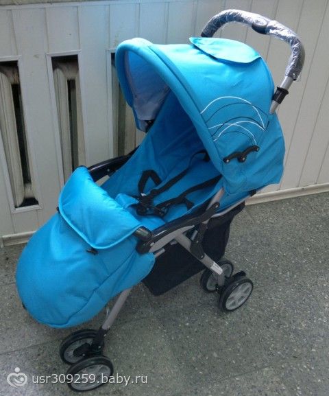(только в зеленом цвете)Отзывов в инете я про нее не нашла, но купить решилась, ни сколько не жалею. При достаточно скромной цене, главное ее достоинство, конечно же, регулируемая подножка, которая приводится в горизонтальное положение, чего нет у большинства моделей. Раскладывается одной рукой, управлять тоже можно одной рукой, что тоже нельзя себе позволить с коляской-тростью. А еще у нее большая удобная корина, в которой можно без проблем увезти 10 кг покупок (больше не пробовала, тоже, думаю, осилит))), теплая накидка на ножки и москитка в комплекте.