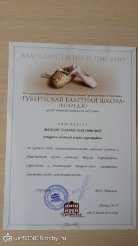 В общем, как бы то ни было, я горжусь своей дочкой! Она у меня умница! Моя помощница, моя правая рука. Моя балерина. А теперь ещё и моя студентка хореографического колледжа.