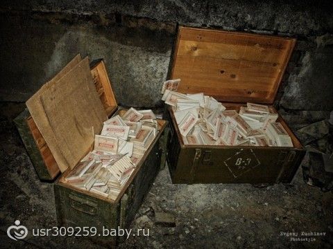 В подвалах было много армейской одежды, химзащиты, бытовых, и не только, принадлежностей, знаменитых оранжевых аптечек и т.д.