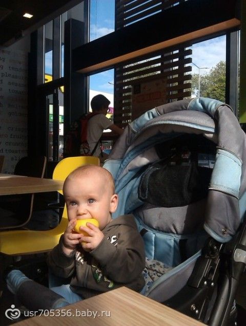 сСтукнуло 9 мес. нам уже давно, а вот написать все лень! Пока спит на руках!(да бывает иногда) пишу.Спим мы 4 часа в день: 2 раза по 1.5 и 1ч на улице.Весим 8900, рост- 71.Голубоглазый блондин).Ест почти все, на улице ведет себя спокойно, вообще не вредный ребенок! Любит динамическую гимнастику, и прочие игры с папой.Папа его научил свистеть(балбес) теперь свистит постоянно и на турнике висеть научил(тапки)… Подгузники одеваем только на ночь уже 1.5 мес.Постоянно хочется ему встать, сесть, рвется ходить, но пока за руки или за руку.Только думала скоро начинать отучать как он резко пристрастился к груди.Утром просыпается и начинает ходить по девану по батареи или кроватке(тк мы подставляем под кровать кроватку) уже бухнулся пару раз.Гоняет в ходунках(тапки) правда на долго я не ставлю, да и ему не нравится.Когда готовлю подставляю на кухню манеж и даю ему кастрюльки, крышки, ложки(вилки не даю):)ему так по приколу.Вечно все повторяет за нами(жесты, звуки, не настроение).У нас всего 2 зуба(спасибо и на том, ждали их долго).Уже жует пищу сам.Болезней нет и не было!(ттт)Научился делать ладушки.Говорит много разного, но пока не целенаправленно.Я готовлюсь к поступлению тк на ребенке жизнь не заканчивается(как многие твердят).Пожалуй все.Всем подружкам привет)Фото с крестной(одной из) и с кофе.
