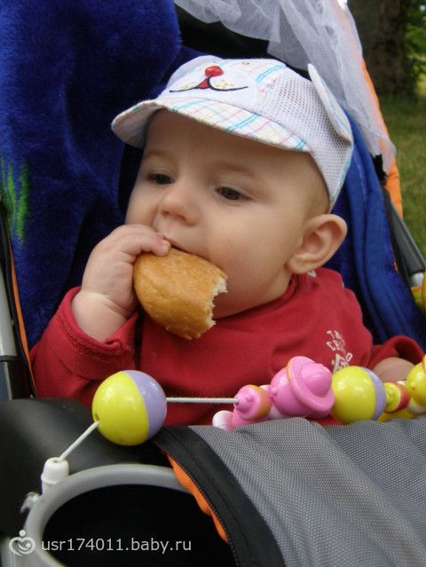 Он его прямо жует и глотает? А зубов сколько? Я как-то печенье детское дала, а он хотел проглотить и закашлялся, подавился...