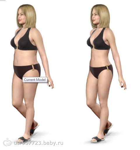 может неправильный тип фигуры… я вот сначала себе выбрала грушу… так такая прям красотка получилась… а потом посмотрела свои фотки в купальнике и поняла что нет… я яблочная.....