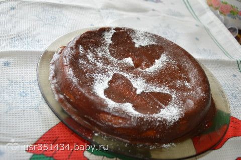 рецепт писать не буду, я в инете нашла там много, это творожный бисквит с апельсиновой пропиткой и сметанно шоколадным кремом, бисквит не поднялся сильно так как я тупень открыла мультиварку![]()