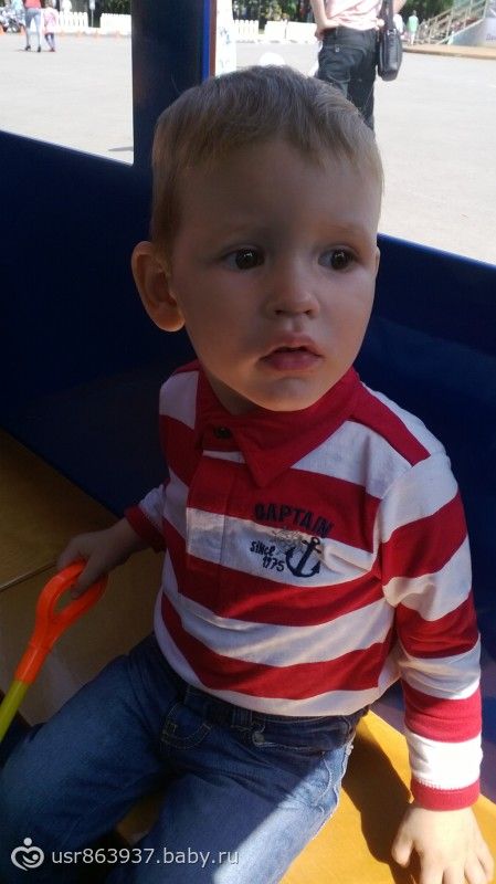 Вчера нашему старшенькому исполнилось 2 года!!! Цифру 2 мы еще не выучили, говорит только один и пять. Поэтому говорит, что ему уже пять лет))))) По такому случаю я первый раз в жизни испекла торт, причем экперементировала, поскольку у нас аллергия на молоко и яйца, бисквит был без этих компонентов. Получилось очень даже неплохо)).