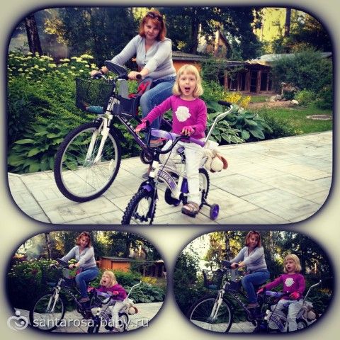 Ну вот мы и доросли до велика. В воскресенье съездили купили Варваре ее первый велосипед. Барышня довольна. педали крутит, ручка нужна только чтобы толкнуть ее, силенок пока для первого прокрута педалей не хватает. Хотела сначала PUKY, ценники посмотрела и офигела… Но Варвара та еще придирчивая барышня, ей нужен был именно фалетовый, чтобы как у мамы. Так что пришлось покупать тоже STELS, в расцветке как у меня. Надеюсь в выходные удастся вырваться в парк и покататься вместе. А папе нашему велики подходят только от 30 000, так что папа пока без велика… Ну и на фото мама хрюшка с лапочкой дочкой :)