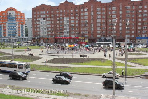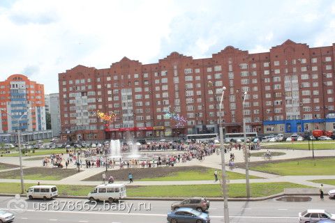 Девочка, сегодня было торжественное открытие фонтана, с мая его строили, он весь поющий и танцующий)))) может вечером и подсветка будет))) сейчас классическая музыка играет и фонтан танцует, красотень такая, Вот вам фоты с моего окна —