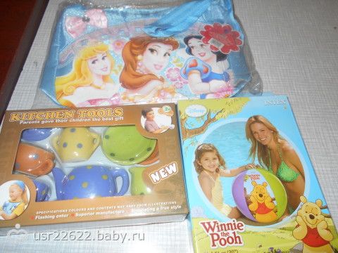 Сумочка, набор посудки (чайный сервиз) и пляжный мяч